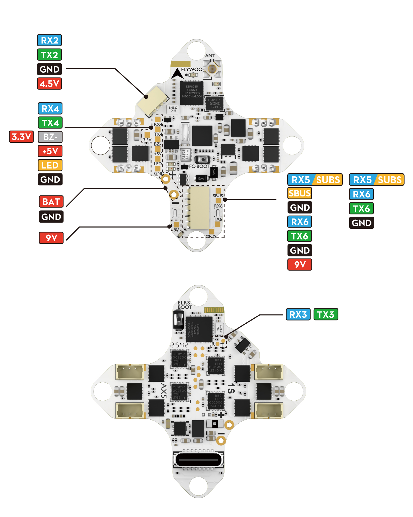 Serial ELRS: Integrated serial ELRS 2.4GHz receiver (built-in TCXO crystal oscillator)